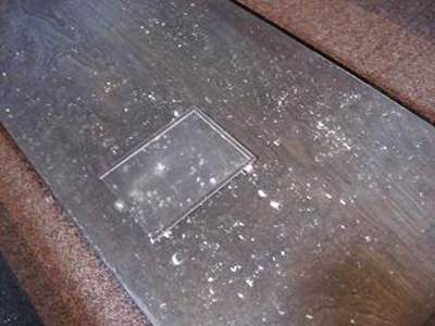 | これはピアノの裏側です。湿気がちな場所にあるためカビがビッシリ・・・。 |