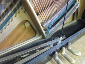 以下の写真は、ピアノの下側パネルを外したところです。