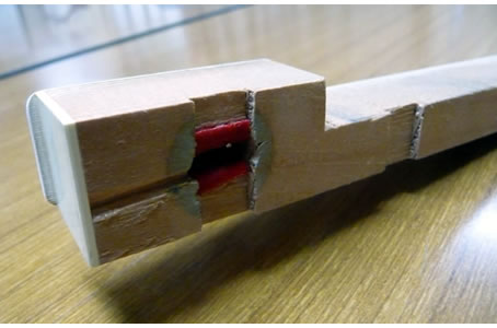 しかし、下の写真のように、この赤いフェルトが、使用しているうちに削られて、磨り減ってきます。(写真では、ちょっとわかりづらいかもしれませんが)