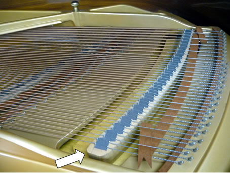 それだけで、見事に音はバランスを失います。その部分を中心に響板を抑える力が強くなり、バス弦の部分が響かなくなります。